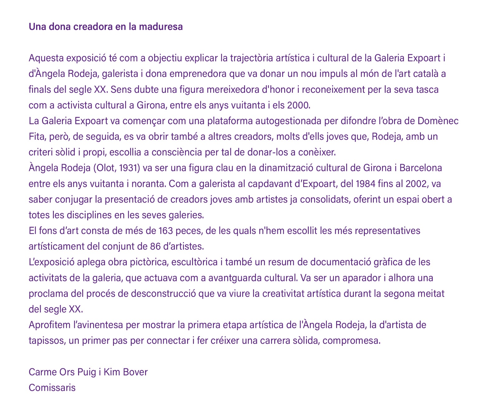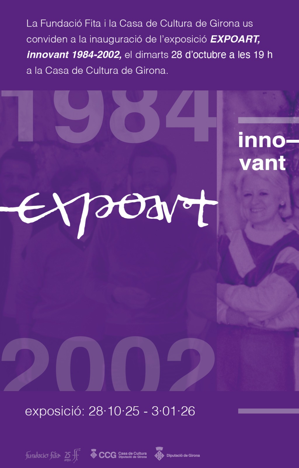 Els comissaris Kim Bover i Carme Ors i les curadores Nuri Aldeguer i Anastasia Gnezdilova ens oferiran una VISITA GUIADA a l'exposició que mostra una selecció dels artistes que van exposar a la galeria Expoart entre els anys 1984 i 2002 a Girona i Barcelona.